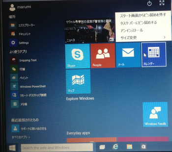 スタート画面からいらないピン留めをどんどん外して、必要なピン留めを作って・・・。